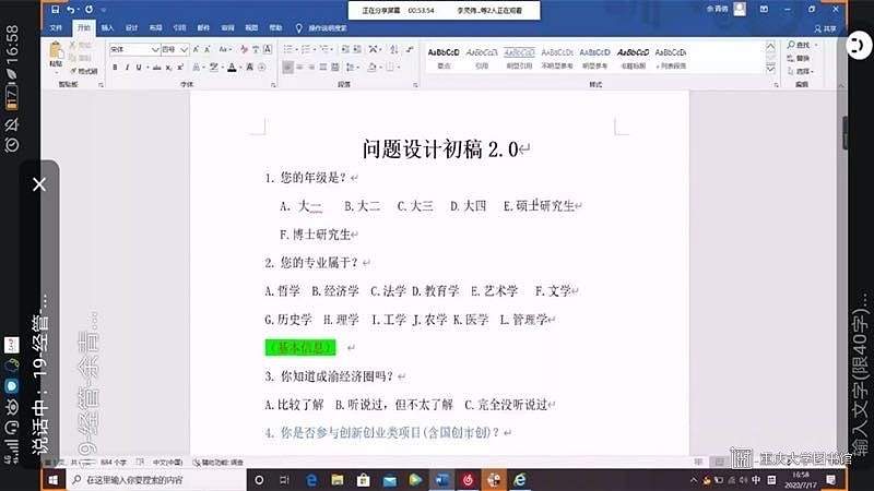 2020年7月18日至7月26日,重庆大学大数据与软件学院“双城记”实践团校园双创调研小分队以“大学生创新创业助力成渝经济建设”为调研主题,创新地采用线上问卷收集和采访的方式开展了为期一周左右的实践活动。