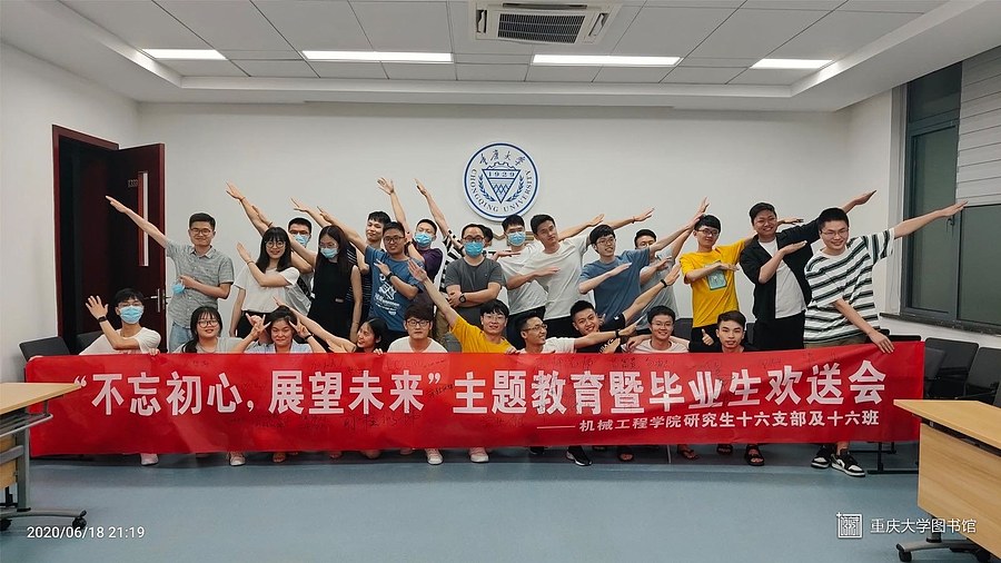 2020年6月18日晚上,在机械工程学院研究生第十六党支部的组织下,研究生十六班在第七教学楼333会议室举行了“不忘初心、展望未来”主题教育暨毕业生欢送会的主题党日活动,活动由陈小敏和郑丰蕾主持。