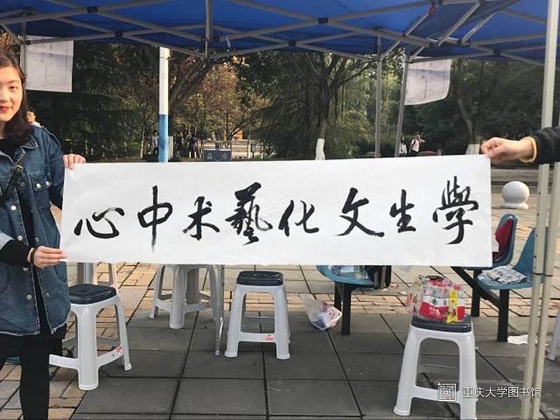 在美好的初春时节,重庆大学学生文化艺术中心“青春重大梦,周周艺起来”系列文化活动之笔墨传情行间抒臆的书法沙龙活动于2018年3月25日在重庆大学虎溪校区一食堂南广场圆满结束,在这个下午,学生们不仅学习了许多专业的知识,还与书法协会的小伙伴们一同沉浸在墨香书气里,一同体验书法带给大家的愉悦。